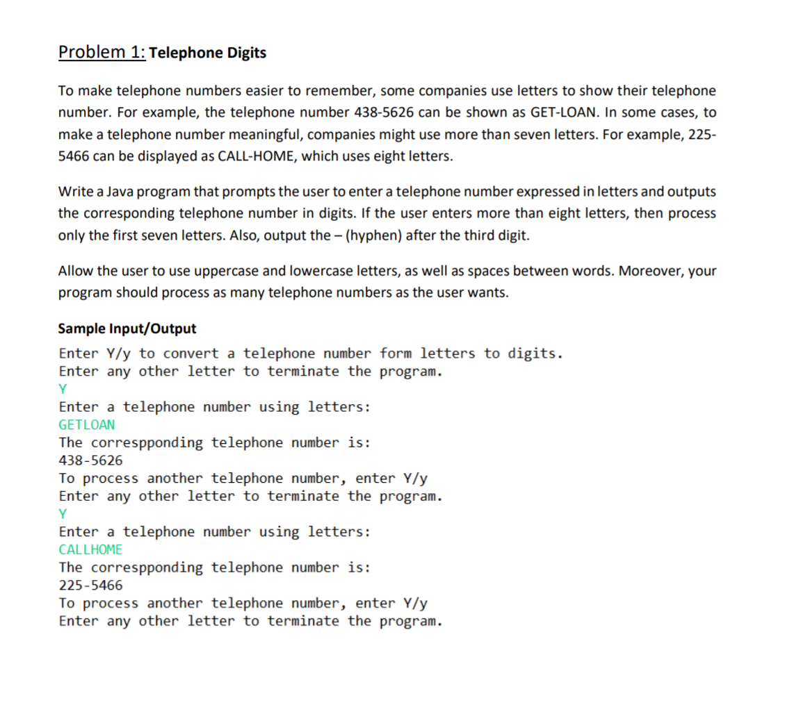 Solved Problem 1 Telephone Digits To Make Telephone Numbers Chegg Com